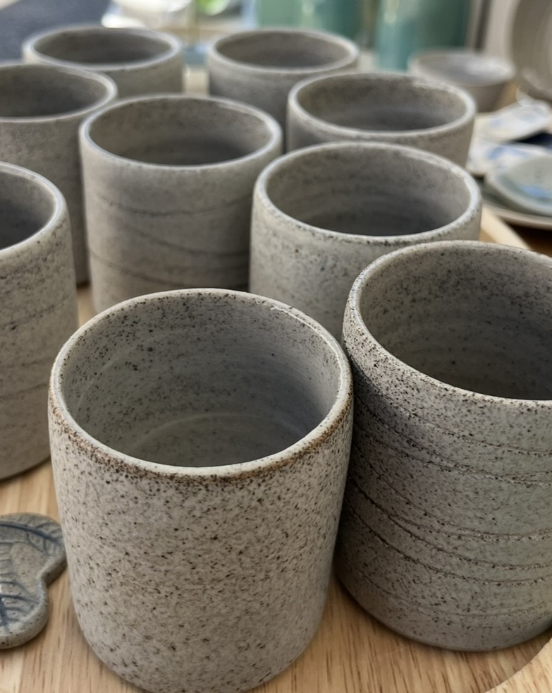 Tasse a café en grès gris, façonnée au tour de potier.